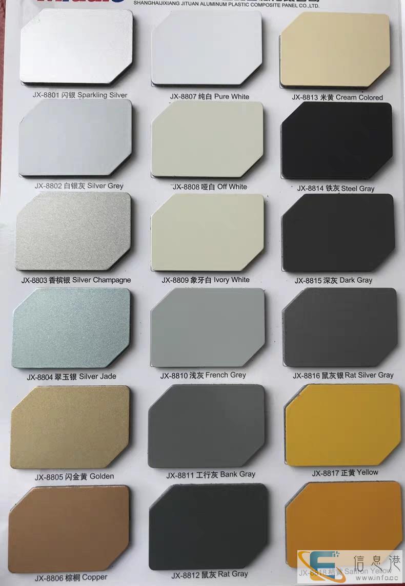 成都哪里有铝塑板批发?价格是多少成都鑫森利建材公司()是上海吉祥旗下专业生产铝塑板、外墙铝塑板、铝板干挂板 铝单板、铝格栅等幕墙材料的公、上海吉祥铝塑板主要销售(经营)氟碳铝塑板,防火铝塑板,岗纹铝塑板,木纹铝塑板,内外墙铝塑板、镜面铝塑板,拉丝铝塑板,聚脂铝塑板,铝单板,铝格栅吊顶、结构胶,耐候胶等。我司是集科研、开发、生产、销售于一体的内外墙铝塑板批发等产品的厂家,铝塑板生产厂家批发量大从优, 坐落于中国上海。注册资本1000万,总投资达2000万。公司在全国100多个大中城市建立了稳定的销售网络,产品热销全国并出口到法国、俄罗斯、吉尔吉斯坦、南非、西班牙、东南亚等国家和地区。欢迎广大客商前来洽谈事项...铝塑板是近年来发展出来的新型的装修材料,通常在装修中卫生间厨房等地方会用到的比较多,这种材料的防火防水性能都比较高,所以深受家装业主的青睐。建议大家在选购铝塑板的时候找到正规的商家,可对未来的质量有所保障。1、涂层装饰铝塑板,装饰出来的颜色包括有金属色、珠光色、荧光色;2、氧化着色铝塑板,装饰出来的颜色包括有玫瑰红、古铜色等等;3、贴膜装饰复合板,装饰出来的颜色都是纹理类,如岗纹、木纹板;4、彩色印花铝塑板,通过特殊的工艺,制造出仿制天然的花纹。5、防火性能卓越,铝塑板中间是阻燃的物质PE塑料芯材,两面是极难燃烧的铝层。因此,是一种安全防火材料,符合建筑法规的耐火需要。6、耐冲击性,耐冲击性强、韧性高、弯曲不损面漆,抗冲击力强,在风沙较大的地区也不会出现因风沙造成的破损。